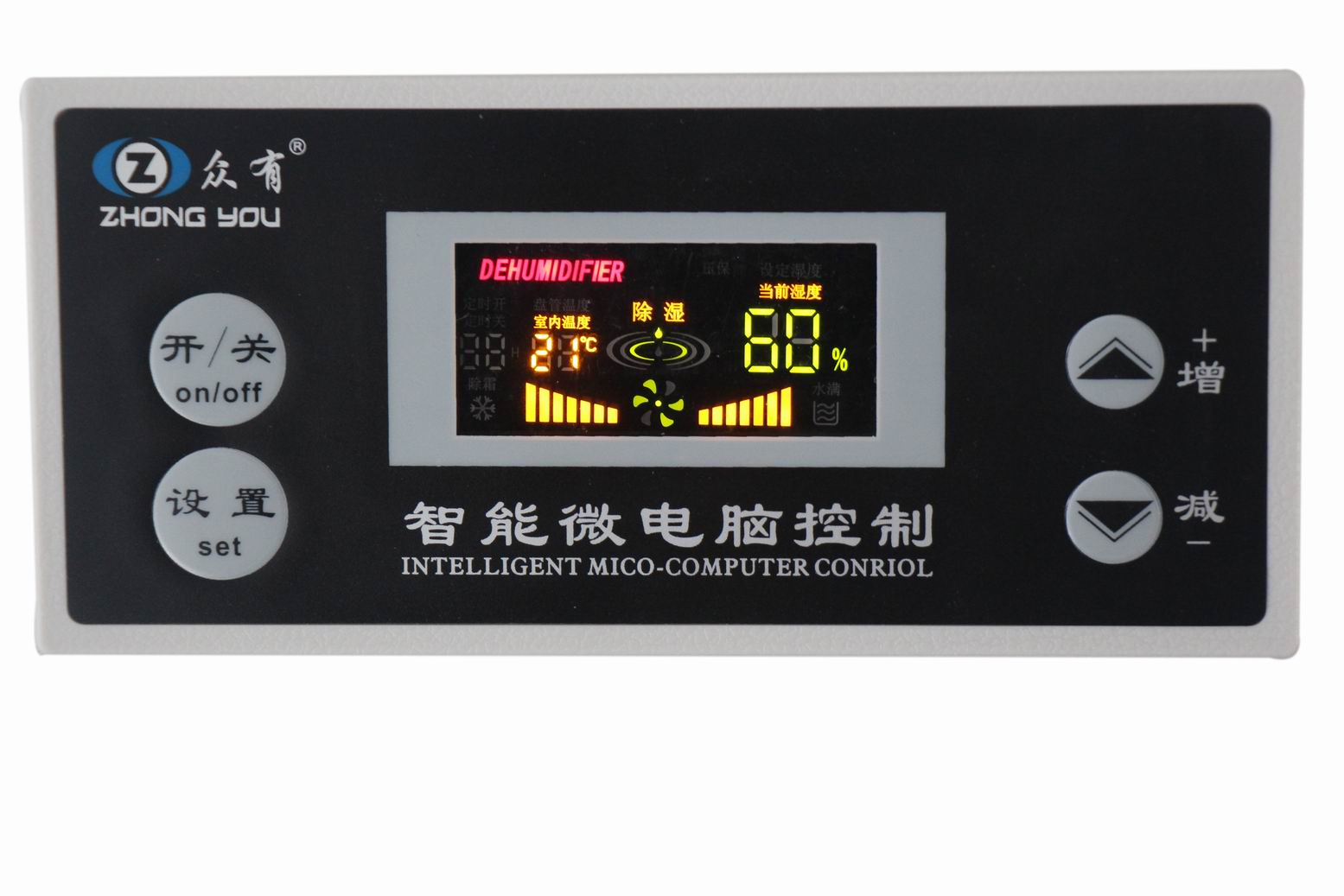 升溫除濕機和降溫除濕機采用專業微電腦控制,機組可根據用戶設定的相對濕度或溫度自動啟停。